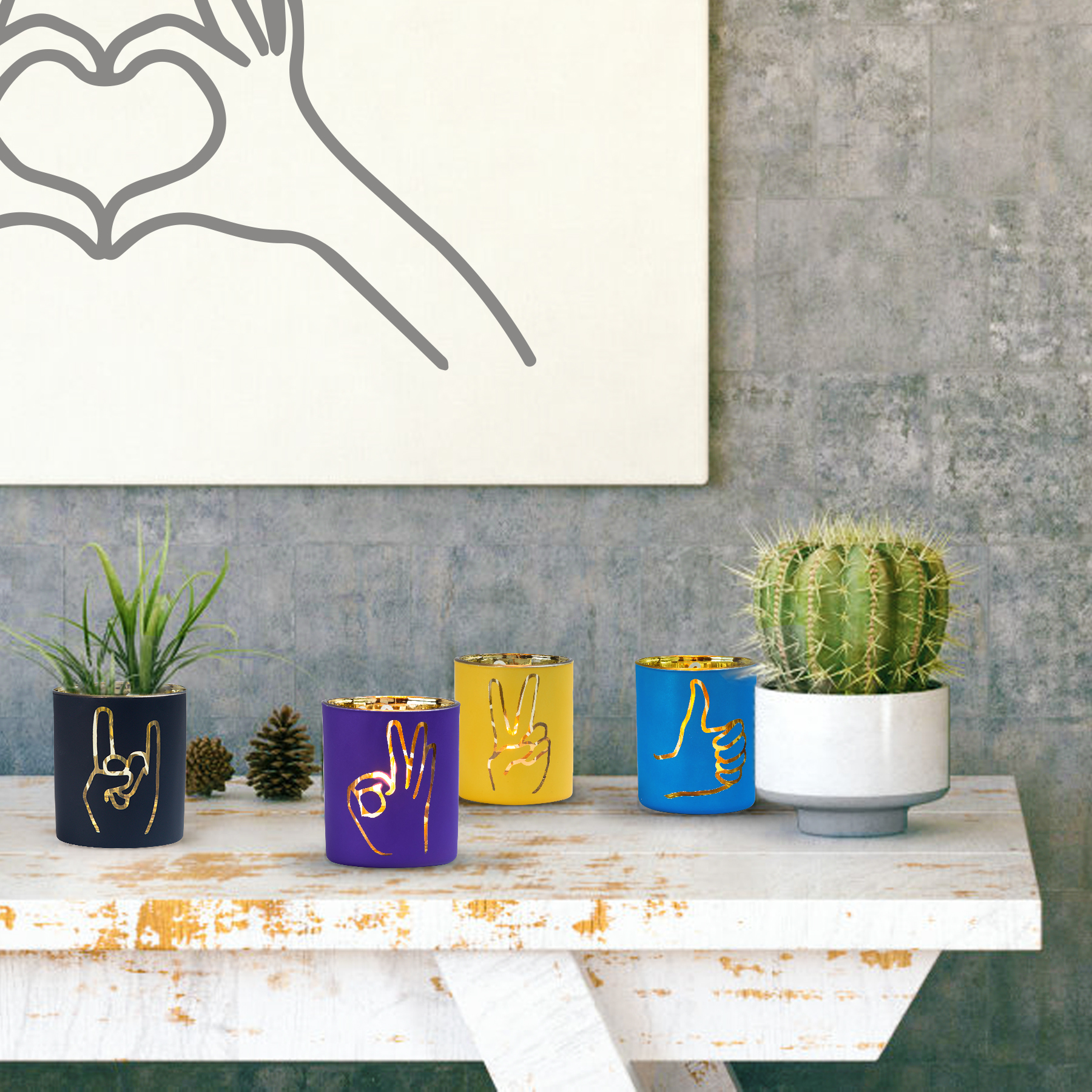 Our handmade candle holders are super cute. Featuring our favorite gestures ICONS, these 6 tea light holders will help keep you out of the dark!